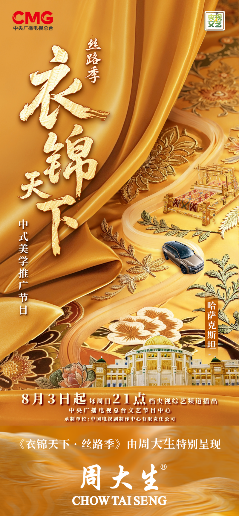 全球拓展,书写文明互鉴新篇。周大生×国家宝藏特别呈现《衣锦天下·丝路季》,借由珠宝与服饰的精妙融合,解码丝绸之路上跃动的文化脉络。节目中,周大生×国家宝藏的黄金艺术画作为象征中哈友谊的礼物,由主持人尼格买提赠予哈萨克斯坦友人,持续拓展品牌的影响力边界。
