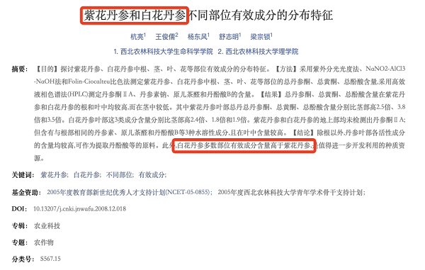 白花丹参的珍贵,不仅在于其稀有,更在于其卓著的药用功效。根据西北农林科技大学生命科学院的权威研究报告显示,与常见的紫花丹参相比,白花丹参在多数部位的有效成分含量明显更高,这意味着其药效更为强劲。